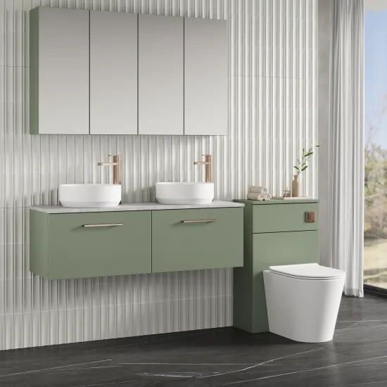nuie 1200mm Wall Hung 2-Drawer Vanity & Laminate Worktop - Satin Green