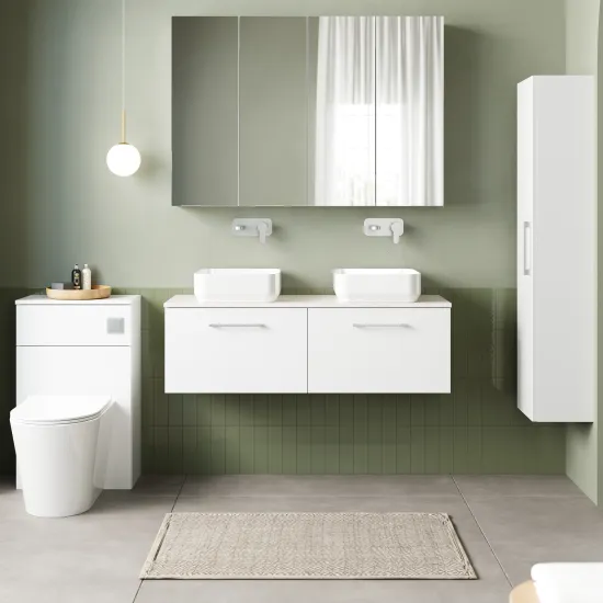 nuie 1200mm Wall Hung 2-Drawer Vanity & Laminate Worktop - Gloss White