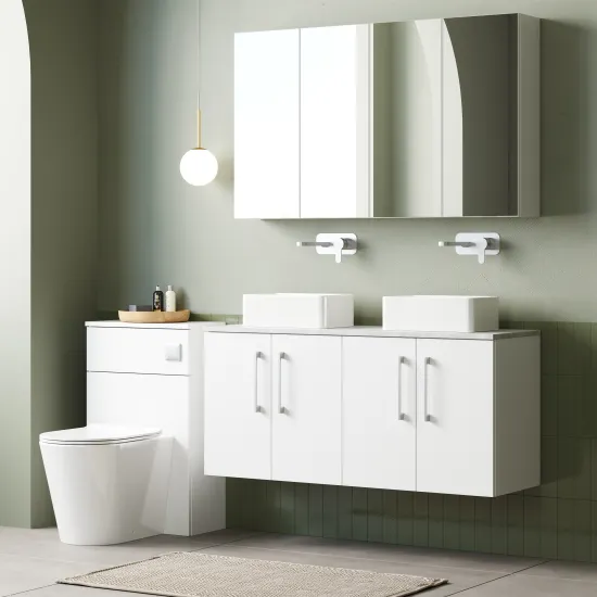 nuie 1200mm Wall Hung 4-Door Vanity & Laminate Worktop - Gloss White