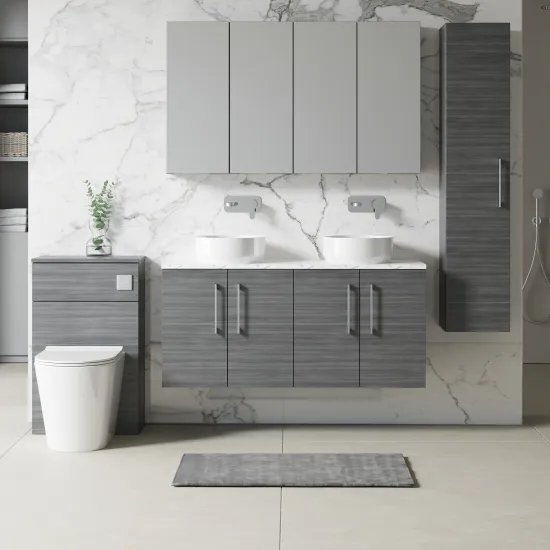 nuie 1200mm Wall Hung 4-Door Vanity & Laminate Worktop - Anthracite Woodgrain