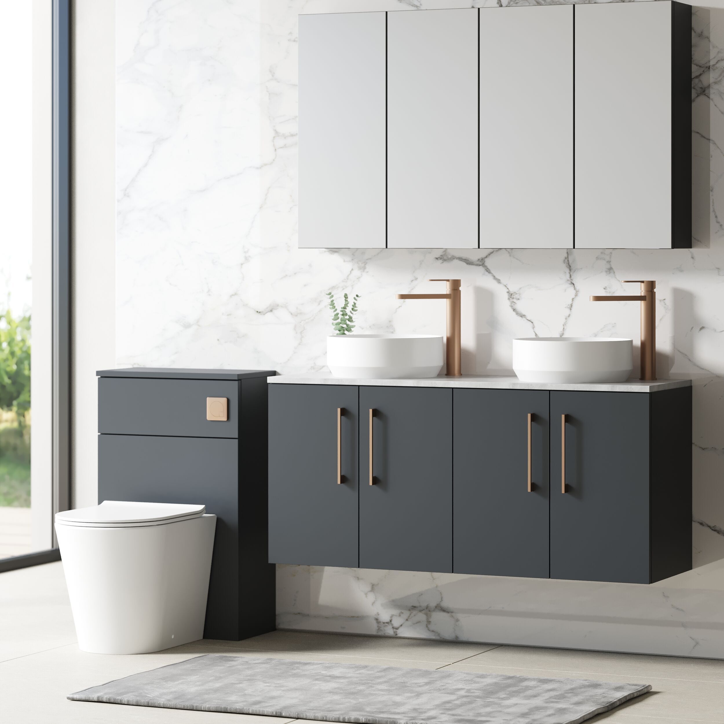 nuie 1200mm Wall Hung 4-Door Vanity & Laminate Worktop - Soft Black