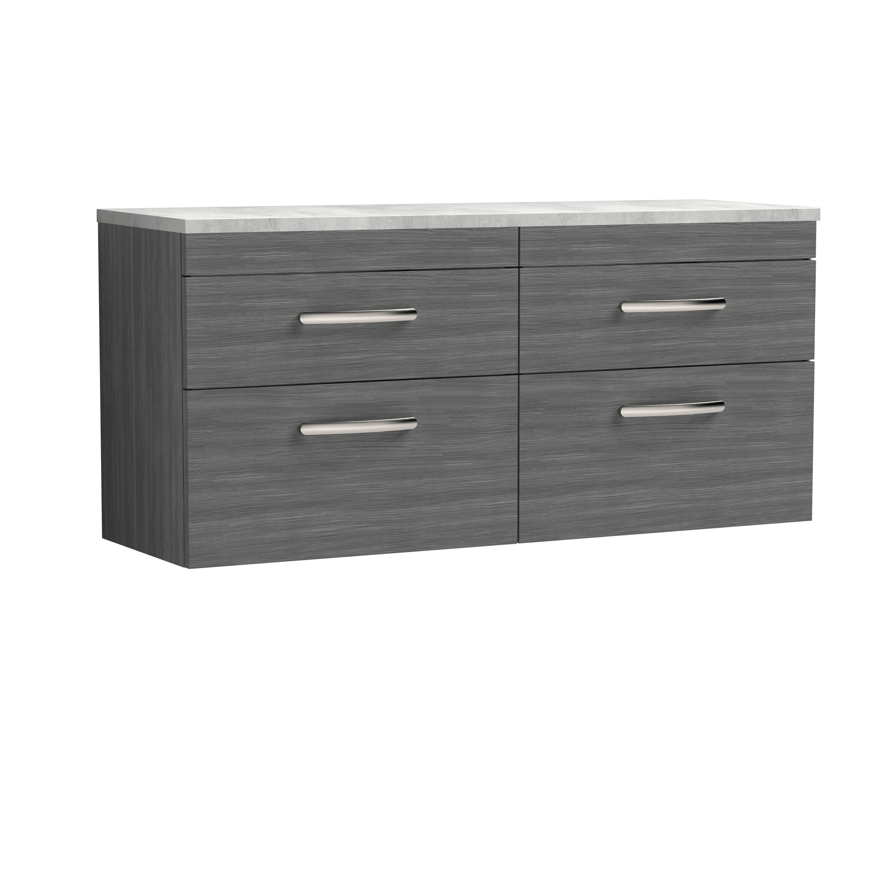 nuie 1200mm Wall Hung 4-Drawer Unit & Laminate Worktop - Anthracite Woodgrain