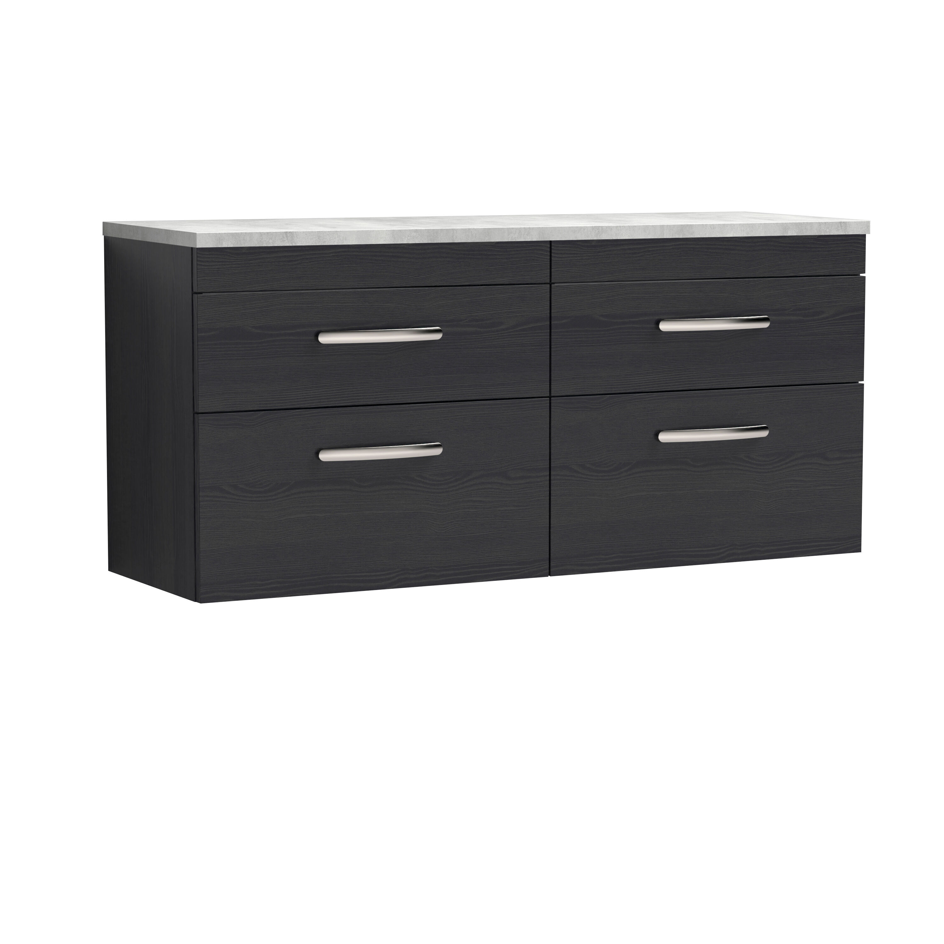 nuie 1200mm Wall Hung 4-Drawer Unit & Laminate Worktop - Charcoal Black Woodgrain