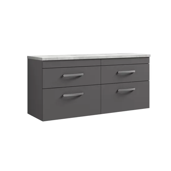 Nuie 1200mm Gloss Grey Wall Hung 4-Drawer Unit With Laminate Worktop