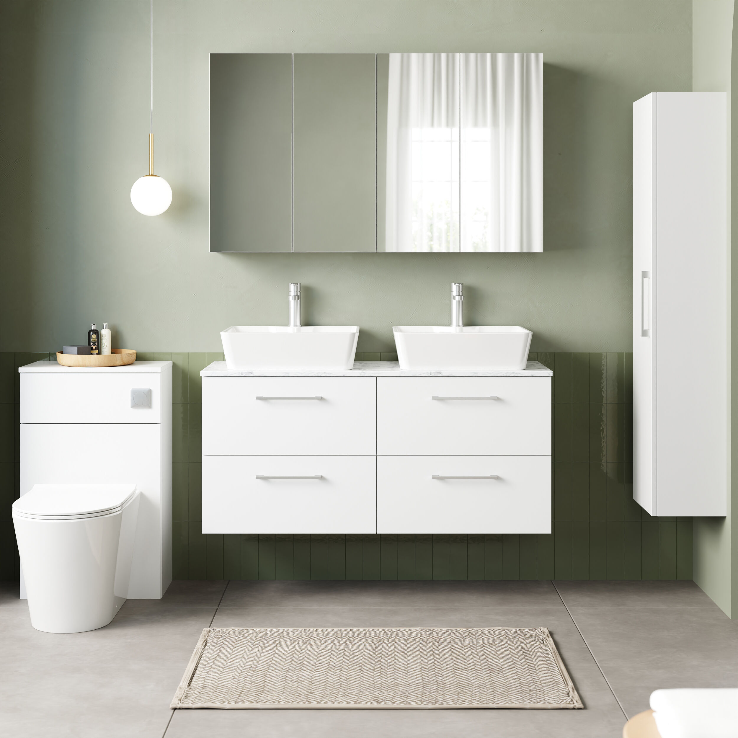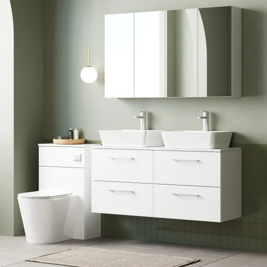 nuie 1200mm Wall Hung 4-Drawer Vanity & Laminate Worktop - Gloss White