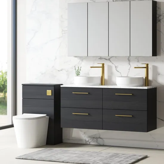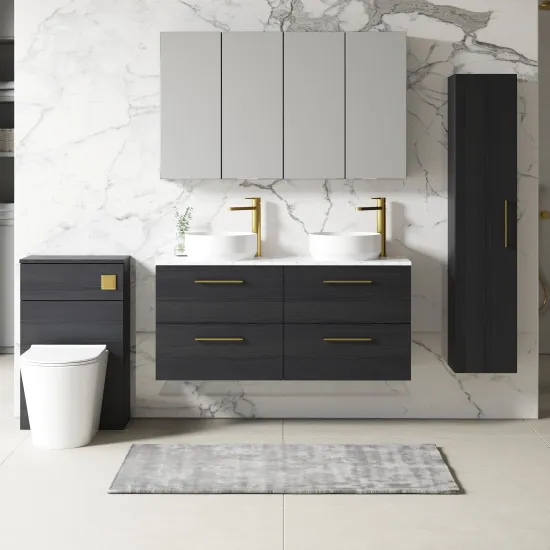 nuie 1200mm Wall Hung 4-Drawer Vanity & Laminate Worktop - Charcoal Black Woodgrain