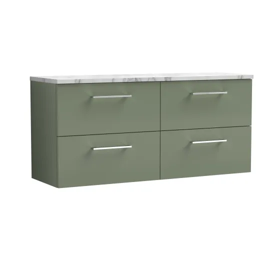 Nuie 1200mm Satin Green Wall Hung 4-Drawer Vanity Unit With Soft Close Drawers & Laminate Worktop