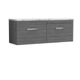 Nuie 1200mm Anthracite Woodgrain Wall Hung 2-Drawer Unit with Laminate Worktop, Strap Handle