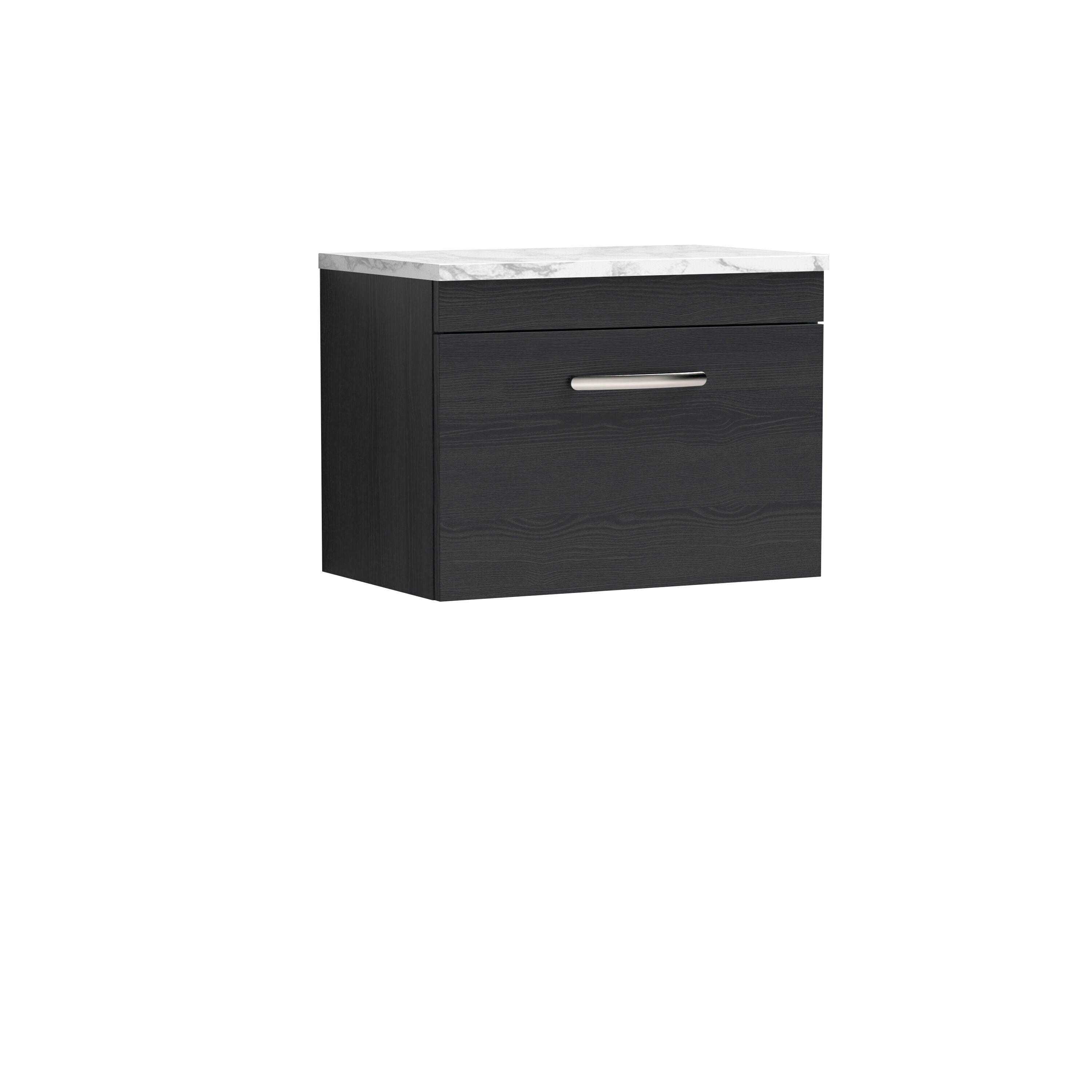 nuie 600 Wall Hung Single Drawer Unit & Laminate Worktop - Charcoal Black Woodgrain