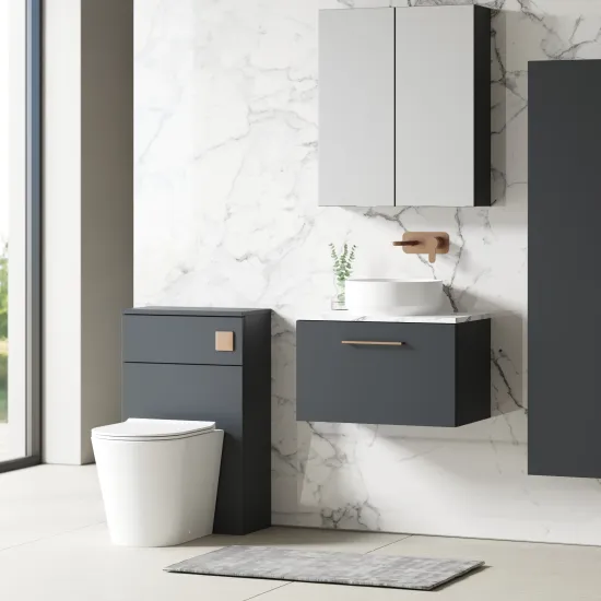 This wall hung unit creates more space in your bathroom giving the illusion of a bigger room