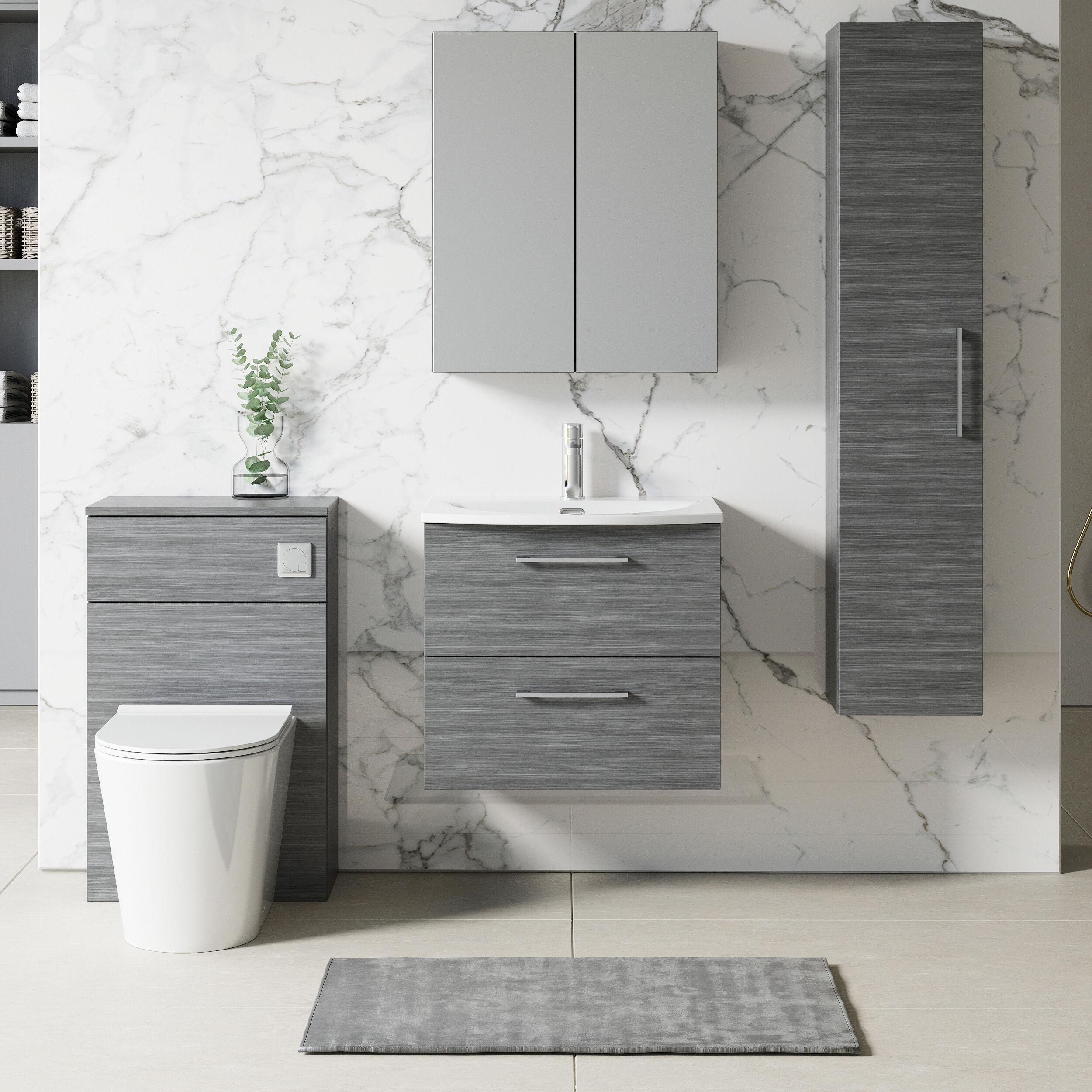 Nuie Arno 600mm 2 Door Graphite Grey Woodgrain Wall Hung 50/50 Mirror Cabinet