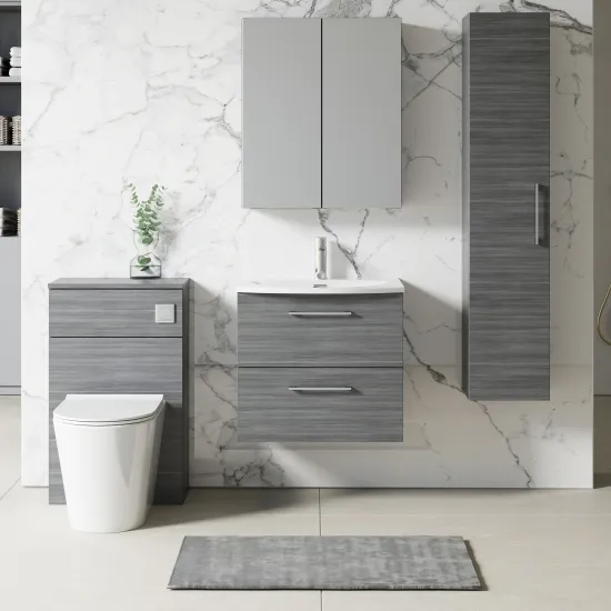 nuie 600mm Wall Hung 1-Drawer Vanity & Laminate Worktop - Anthracite Woodgrain