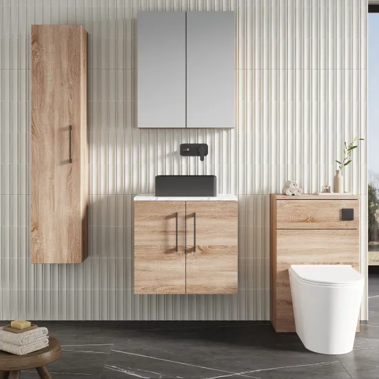nuie 600mm Wall Hung 2-Door Vanity & Laminate Worktop - Bleached Oak