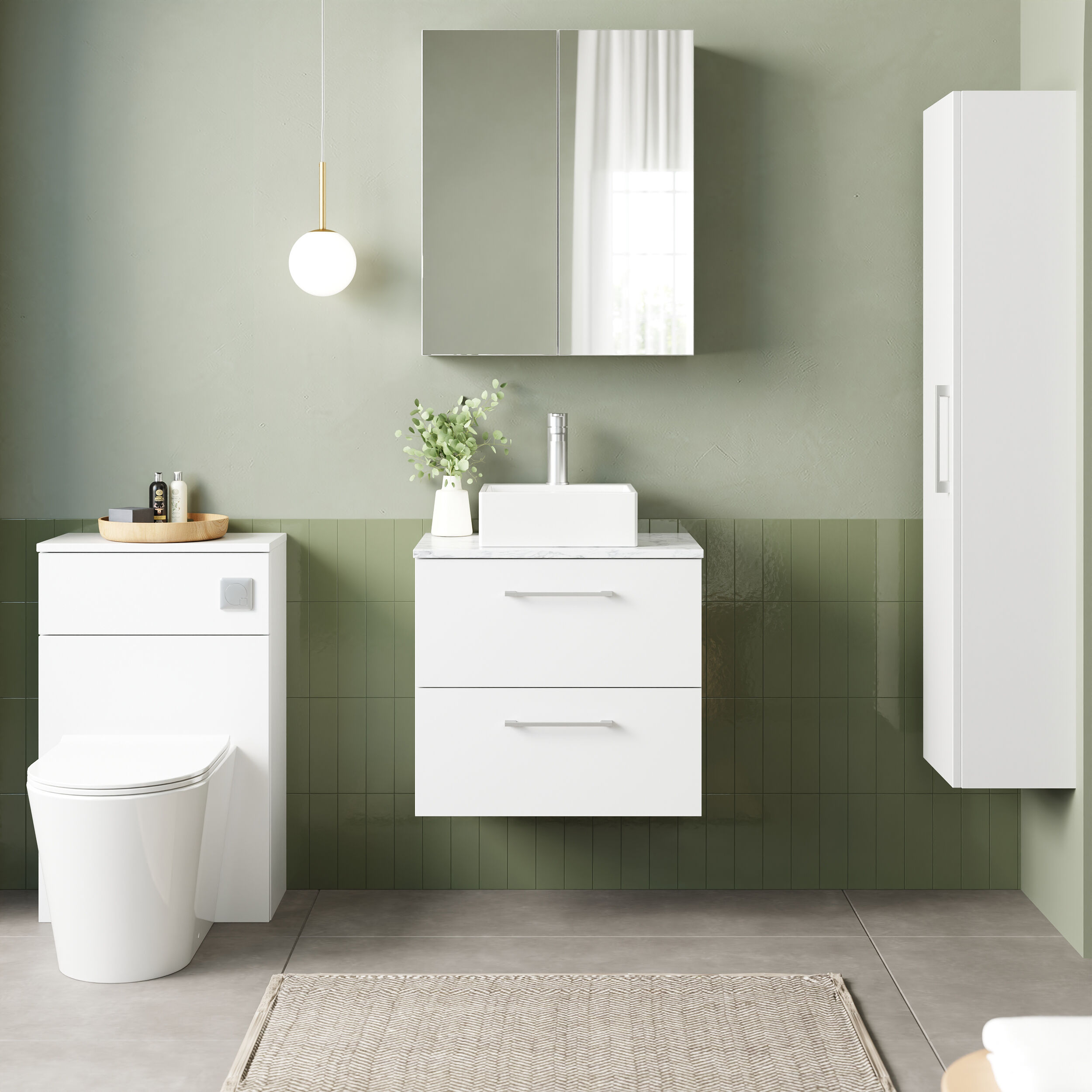 nuie 600mm Wall Hung 2-Drawer Vanity & Laminate Worktop - Gloss White