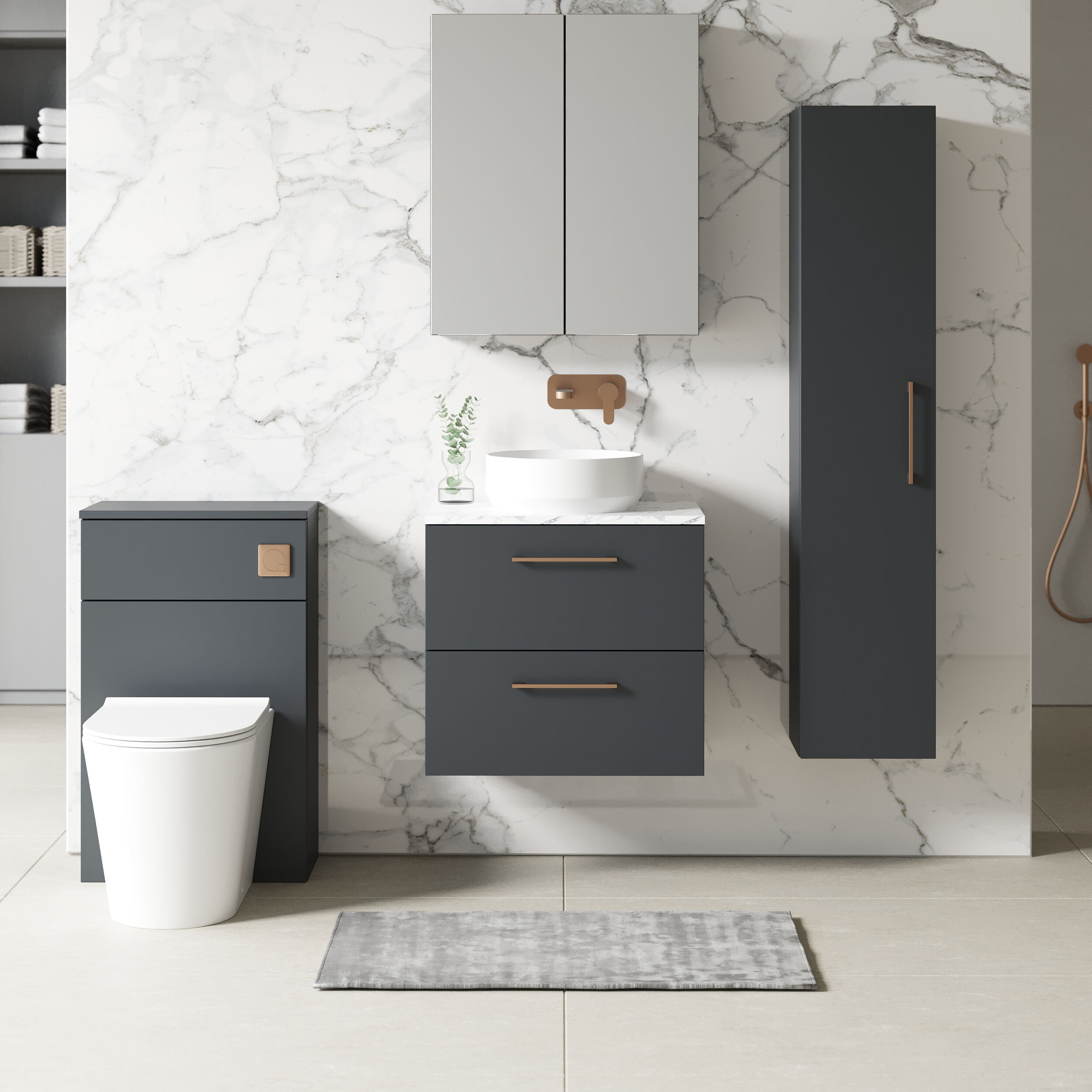 This wall hung unit creates more space in your bathroom giving the illusion of a bigger room