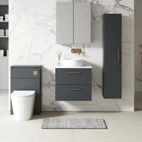 nuie 600mm Wall Hung 2-Drawer Vanity & Laminate Worktop - Soft Black