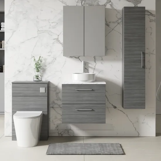 nuie 600mm Wall Hung 2-Drawer Vanity & Laminate Worktop - Anthracite Woodgrain