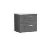 Nuie 600mm Anthracite Woodgrain Wall Hung 2-Drawer Vanity Unit With Laminate Worktop & Handles