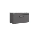 Nuie 800mm Gloss Grey Wall Hung Single Drawer Unit With Laminate Worktop