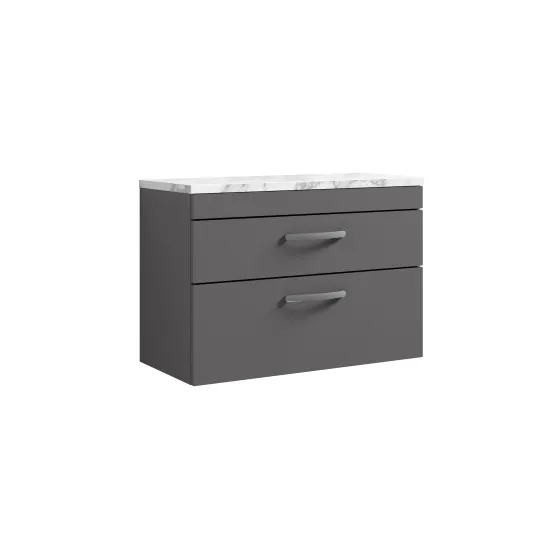 nuie 800 Wall Hung 2-Drawer Unit & Laminate Worktop - Gloss Grey
