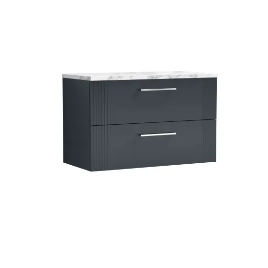 Nuie 800mm Part Fluted Satin Grey 2-Drawer Wall Hung Vanity Unit With Laminate Worktop & Handle