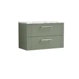 Nuie 800mm Satin Green 2-Drawer Wall Hung Vanity With Laminate Worktop
