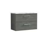 Nuie 800mm Wall Hung Anthracite Woodgrain 2-Drawer Vanity Unit With Laminate Worktop
