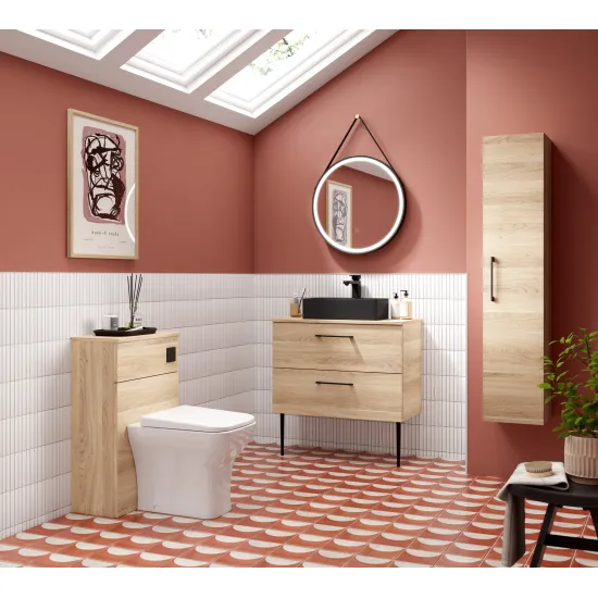 nuie 800mm Wall Hung 2-Drawer Vanity & Worktop - Bleached Oak