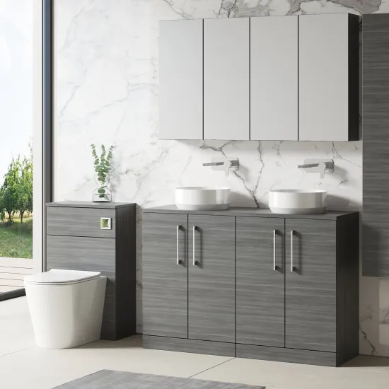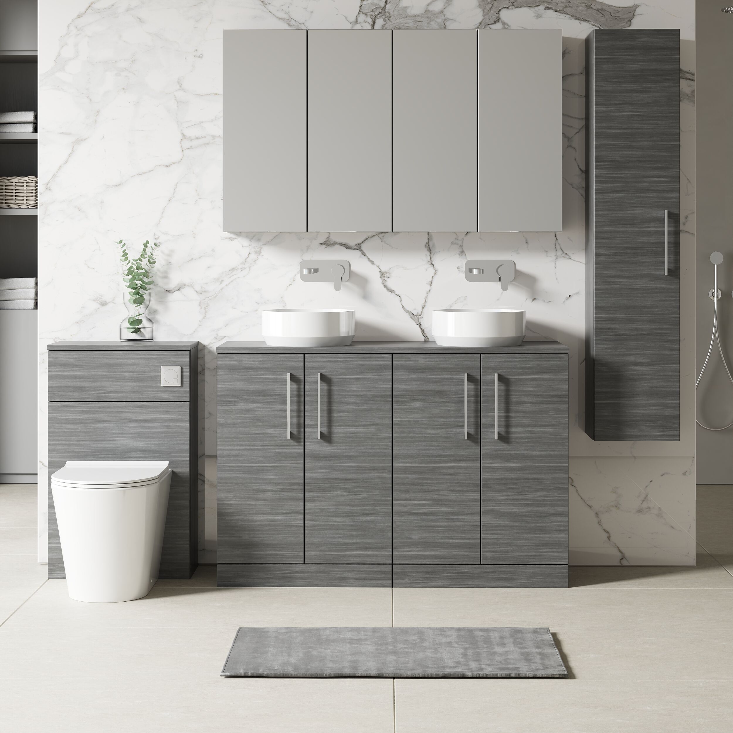 nuie Arno 1200mm Floor Standing 4 Door Vanity & Worktop - Anthracite Woodgrain