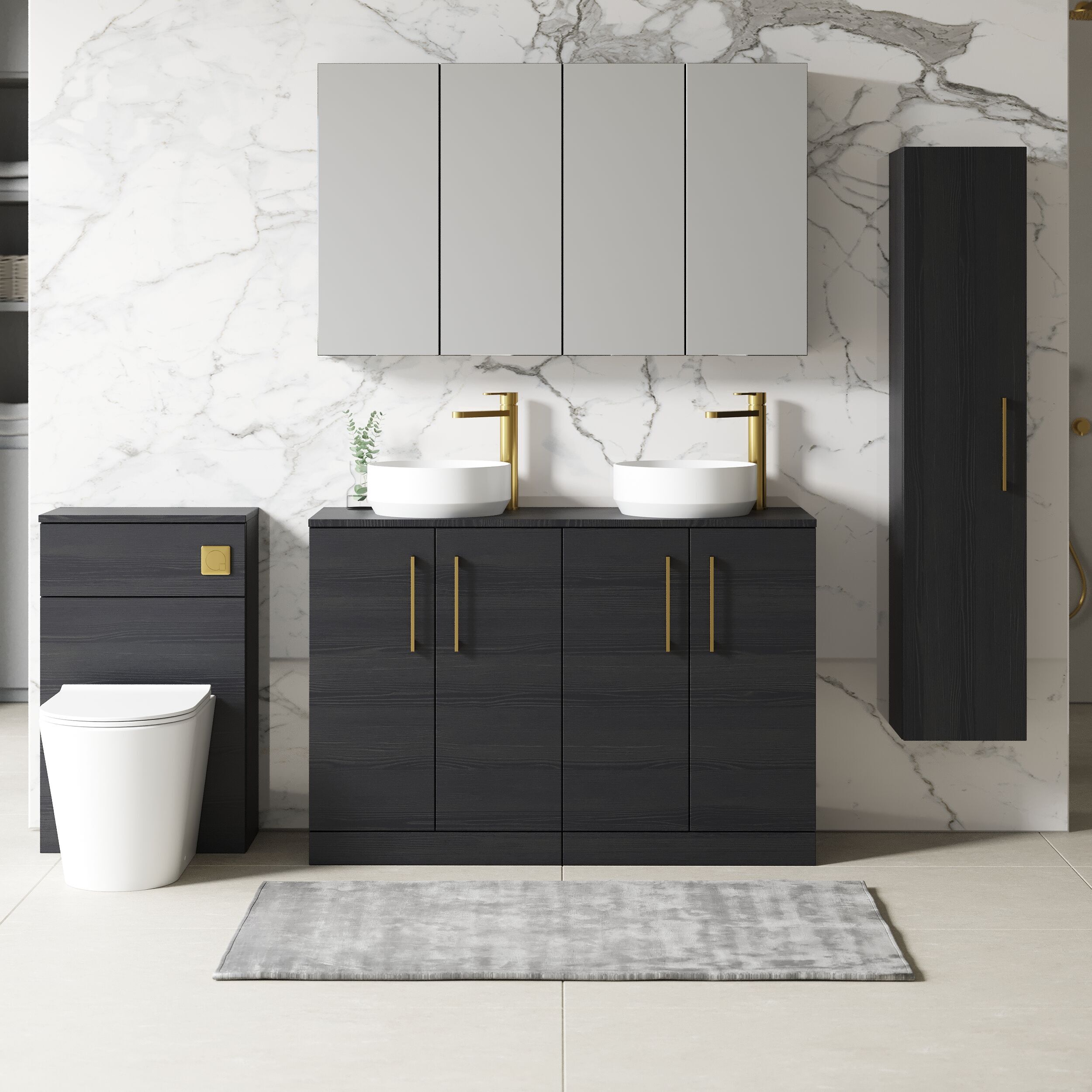 nuie Arno 1200mm Floor Standing 4 Door Vanity & Worktop - Black Woodgrain