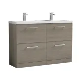 Nuie Arno 1200mm Solace Oak Floor Standing 4 Drawer Vanity Unit With Double Basin
