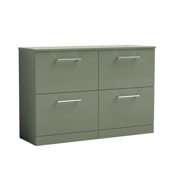 Nuie Arno 1205mm Floor Standing Satin Green 4 Drawer Vanity & Worktop With Handles