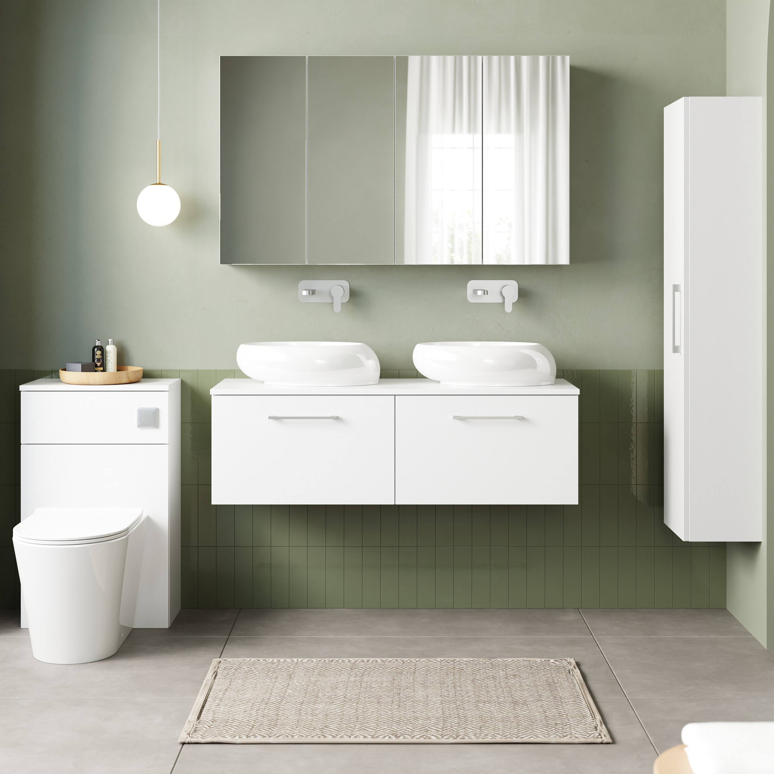 nuie Arno 1200mm Wall Hung 2-Drawer Vanity & Worktop - Gloss White