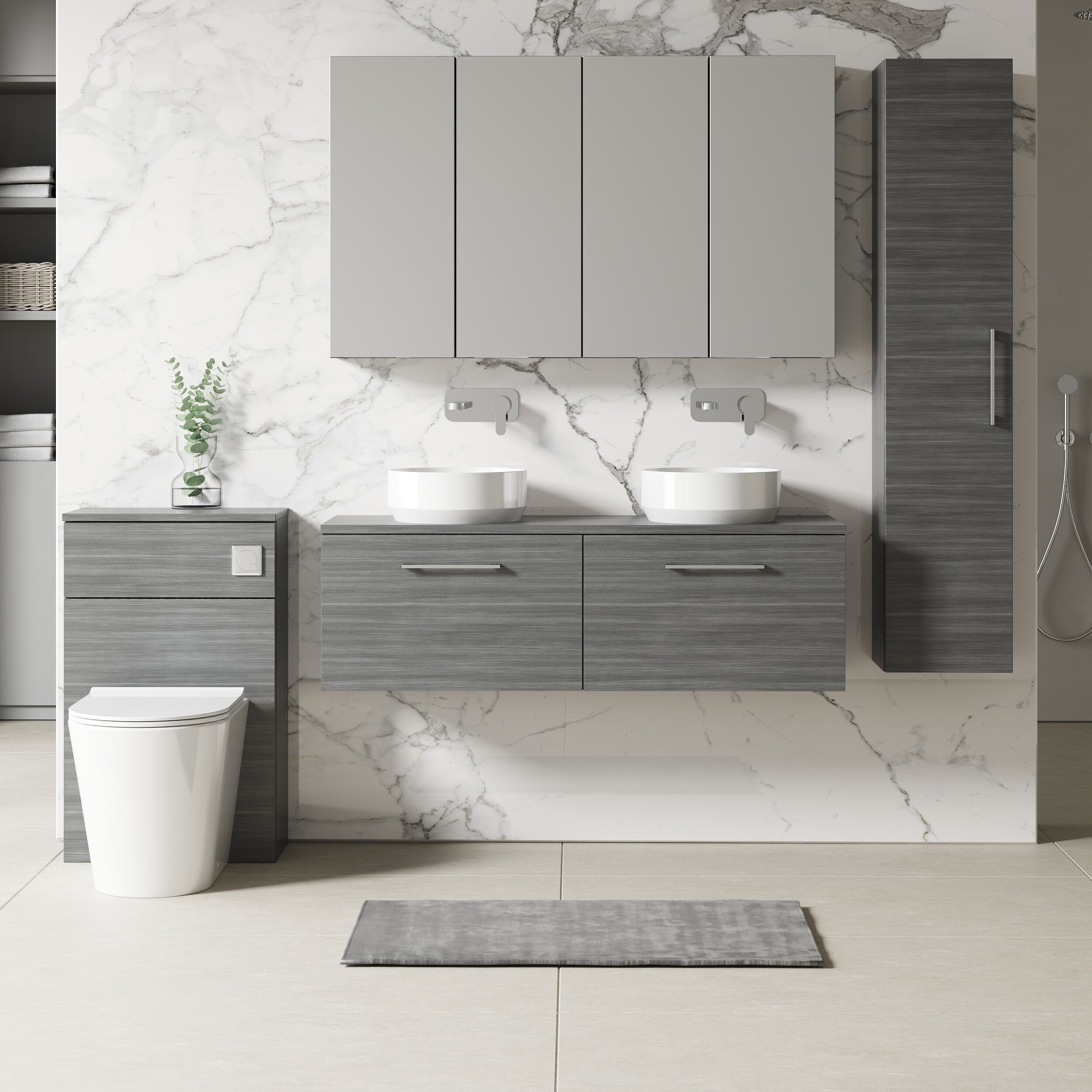 This unique anthracite finish compliments any modern bathroom to create a designer look