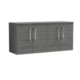 Nuie 1200mm Anthracite Woodgrain Wall Hung 2-Drawer Vanity Unit With Worktop