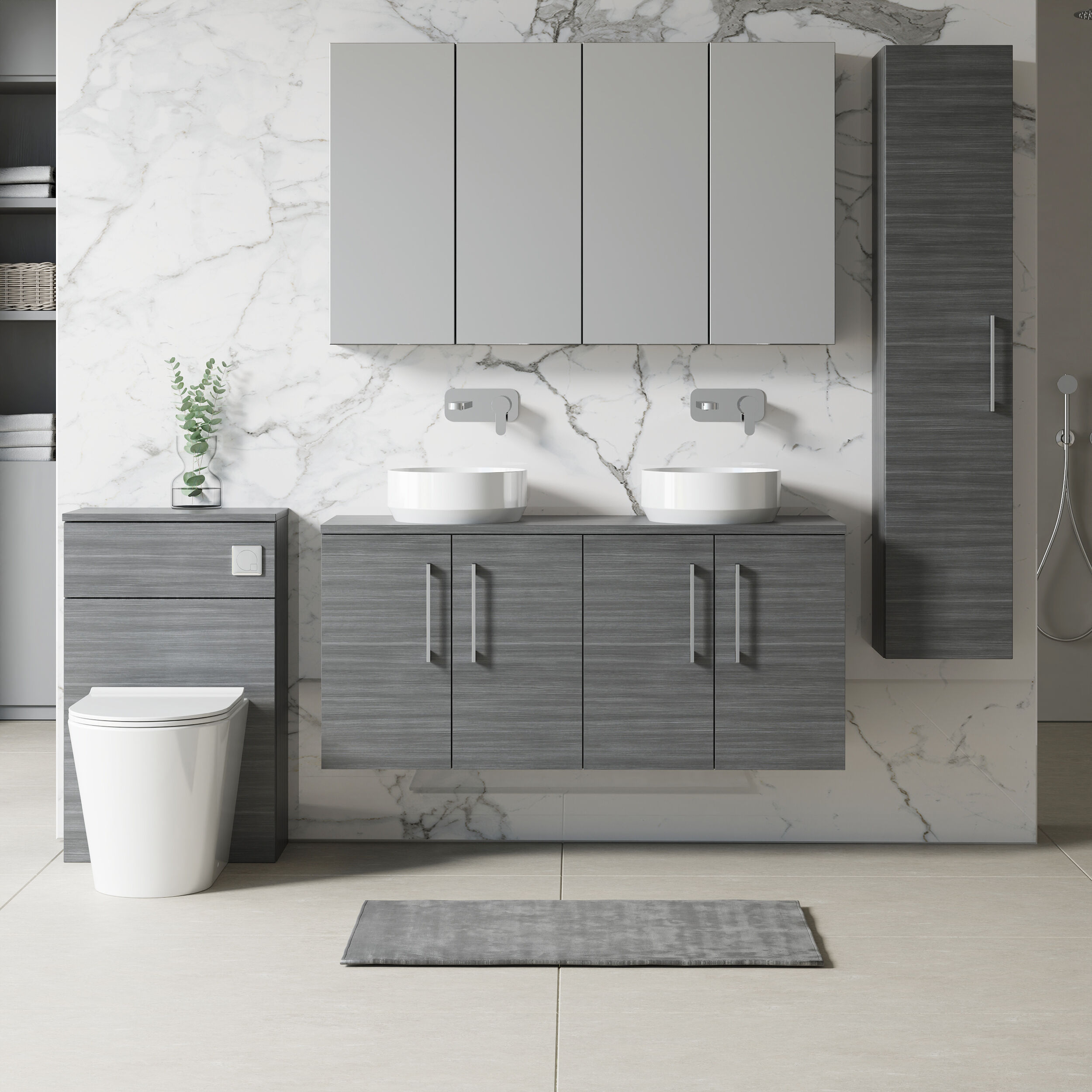 nuie Arno 1200mm Wall Hung 4-Door Vanity & Worktop - Anthracite