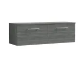 Nuie 1200mm Anthracite Woodgrain Wall Hung 2-Drawer Vanity Unit With Worktop
