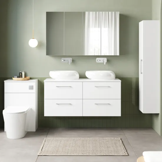 nuie Arno 1200mm Wall Hung 4-Drawer Vanity & Worktop - Gloss White