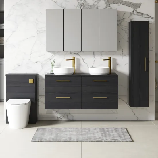 nuie Arno 1200mm Wall Hung 4-Drawer Vanity & Worktop - Charcoal Black