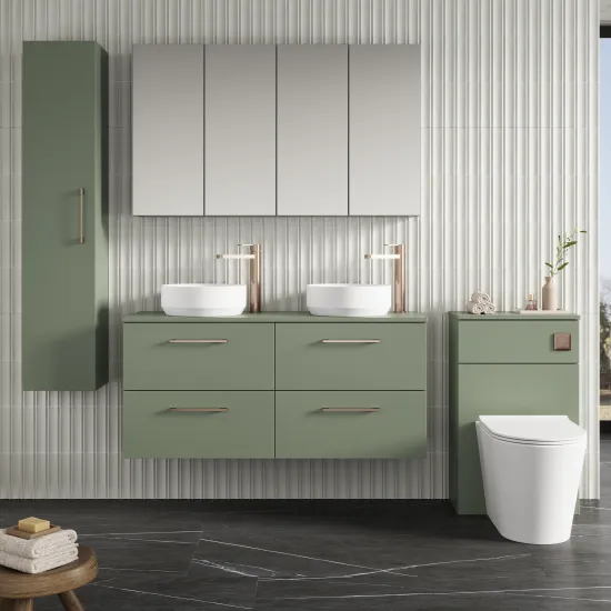 Nuie 1205mm Satin Green 2-Door Wall Hung Vanity Unit With Worktop