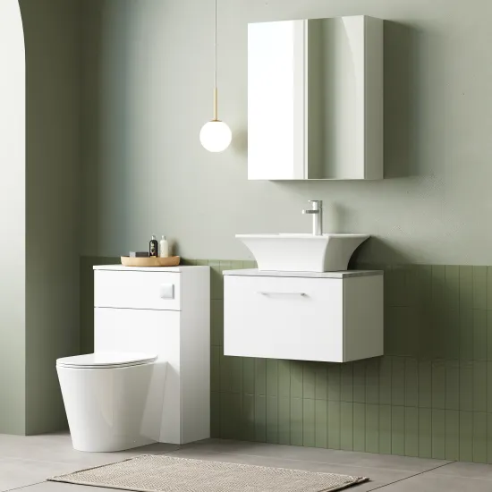 This gloss white finish compliments any modern bathroom and creates a designer look