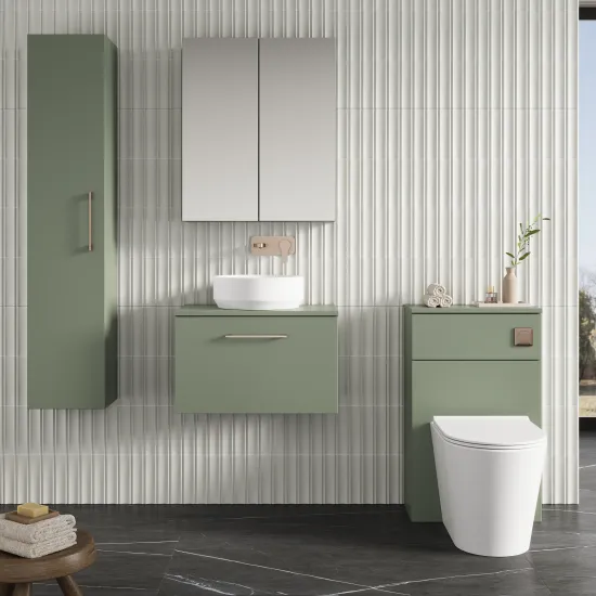 Nuie Arno 600mm Satin Green Wall Hung 1-Drawer Vanity Unit With Worktop