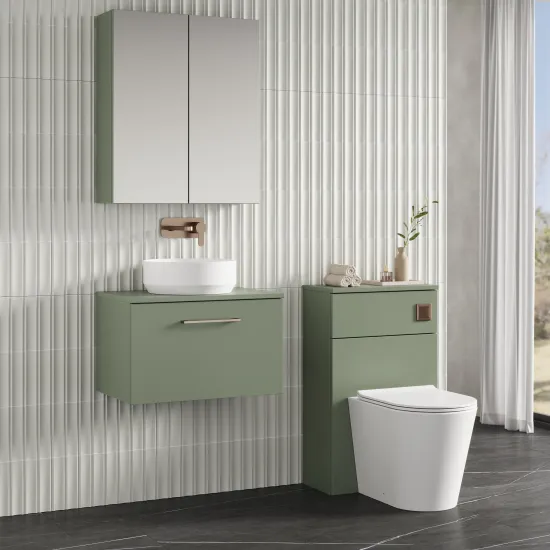 nuie Arno 600mm Wall Hung 1-Drawer Vanity & Worktop - Satin Green
