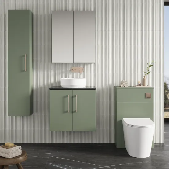 nuie Arno 600mm Wall Hung 2-Door Vanity & Laminate Top - Satin Green