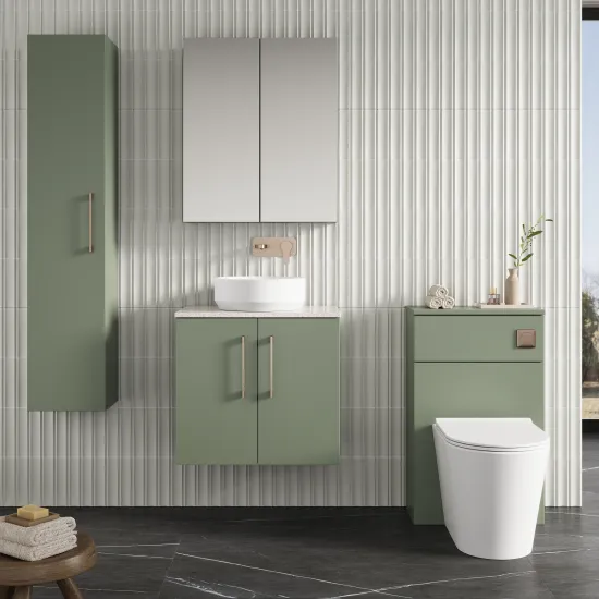 nuie Arno 600mm Wall Hung 2-Door Vanity & Laminate Top - Satin Green