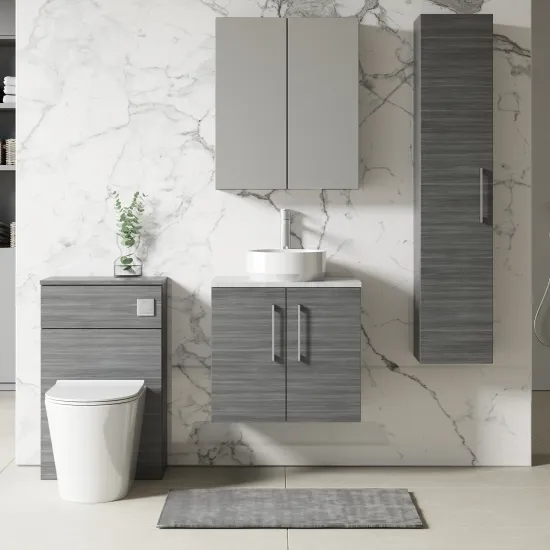 nuie Arno 600mm Wall Hung 2-Door Vanity & Laminate Top - Anthracite