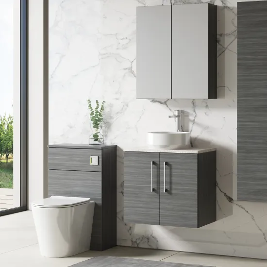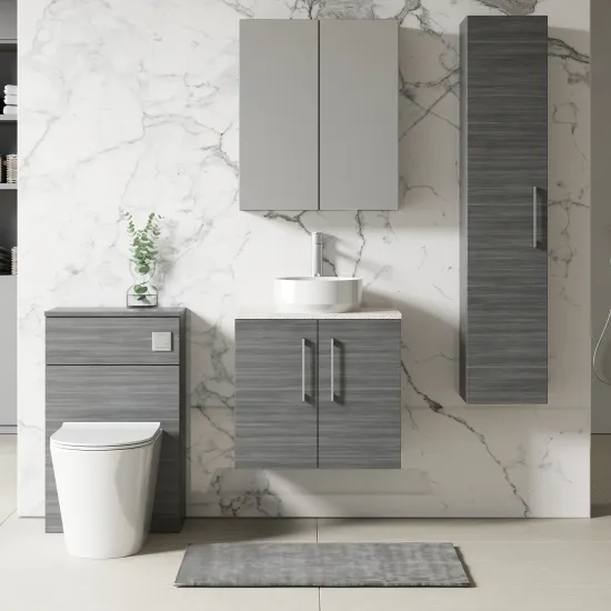 Nuie Arno 600mm Anthracite Woodgrain Wall Hung 2-Door Vanity Unit With Worktop