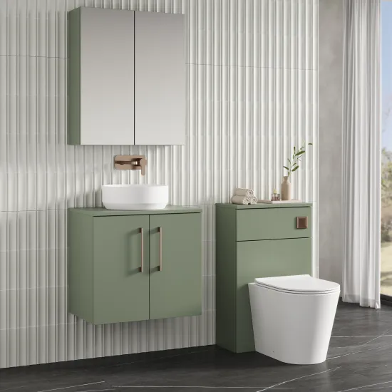 nuie Arno 600mm Wall Hung 2-Door Vanity & Worktop - Satin Green