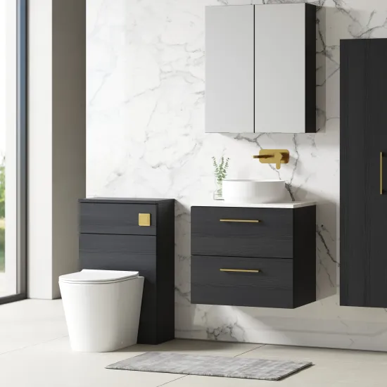 nuie Arno 600mm Wall Hung 2-Drawer Vanity & Laminate Top - Charcoal Black