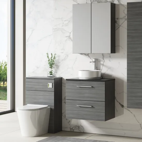 Nuie 600mm Wall Hung Anthracite Woodgrain 2-Drawer Vanity Unit With Laminate Top
